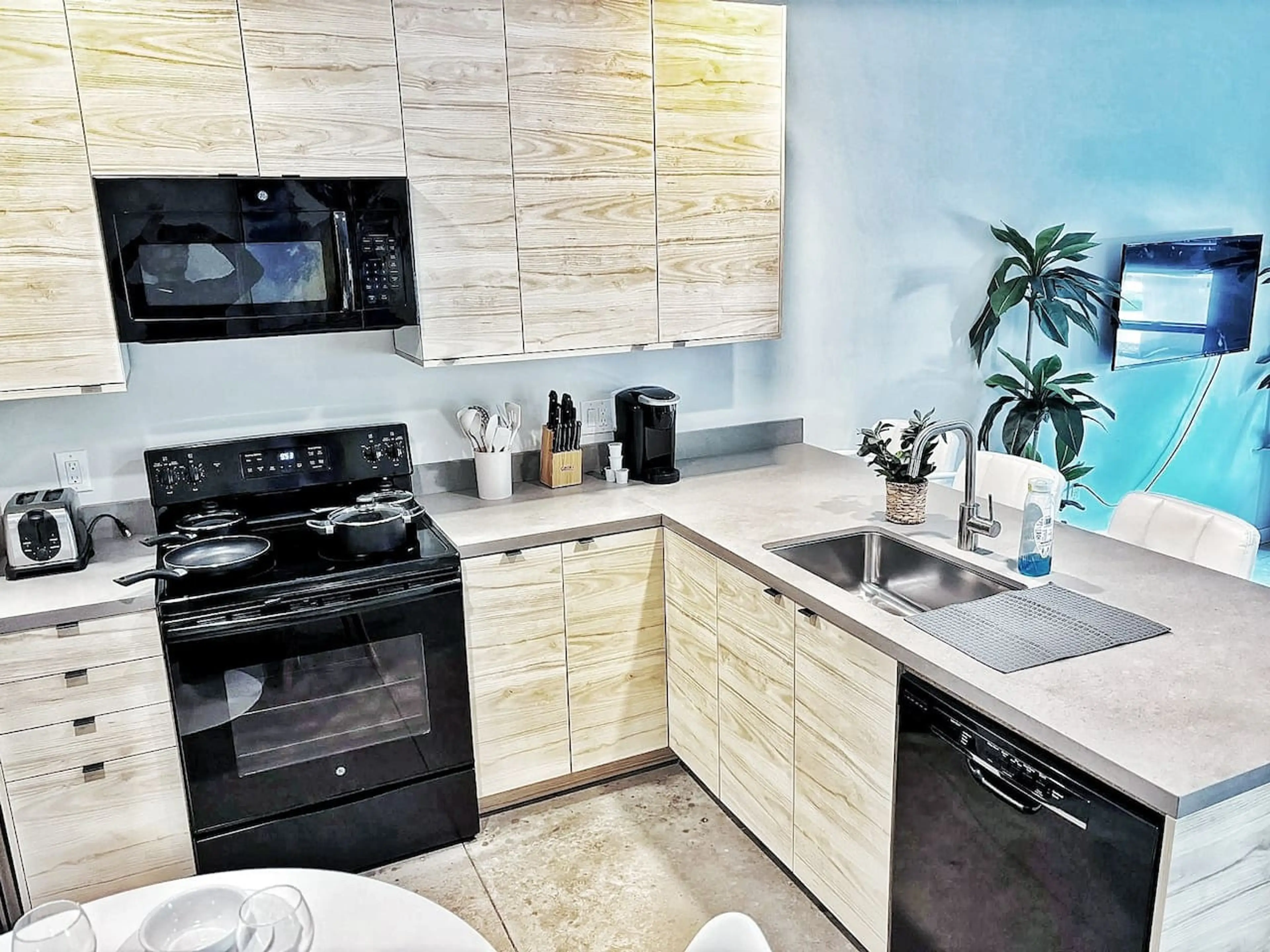 Welcome to Cobalt & Green Retreat! This one-bedroom escape blends vibrant cobalt blue tones with lush greenery, creating a modern and calming atmosphere. Relax in a stylish space that combines cozy furnishings, plants, and bold colors for a unique stay. Located in downtown Des Moines, you’re steps f...
