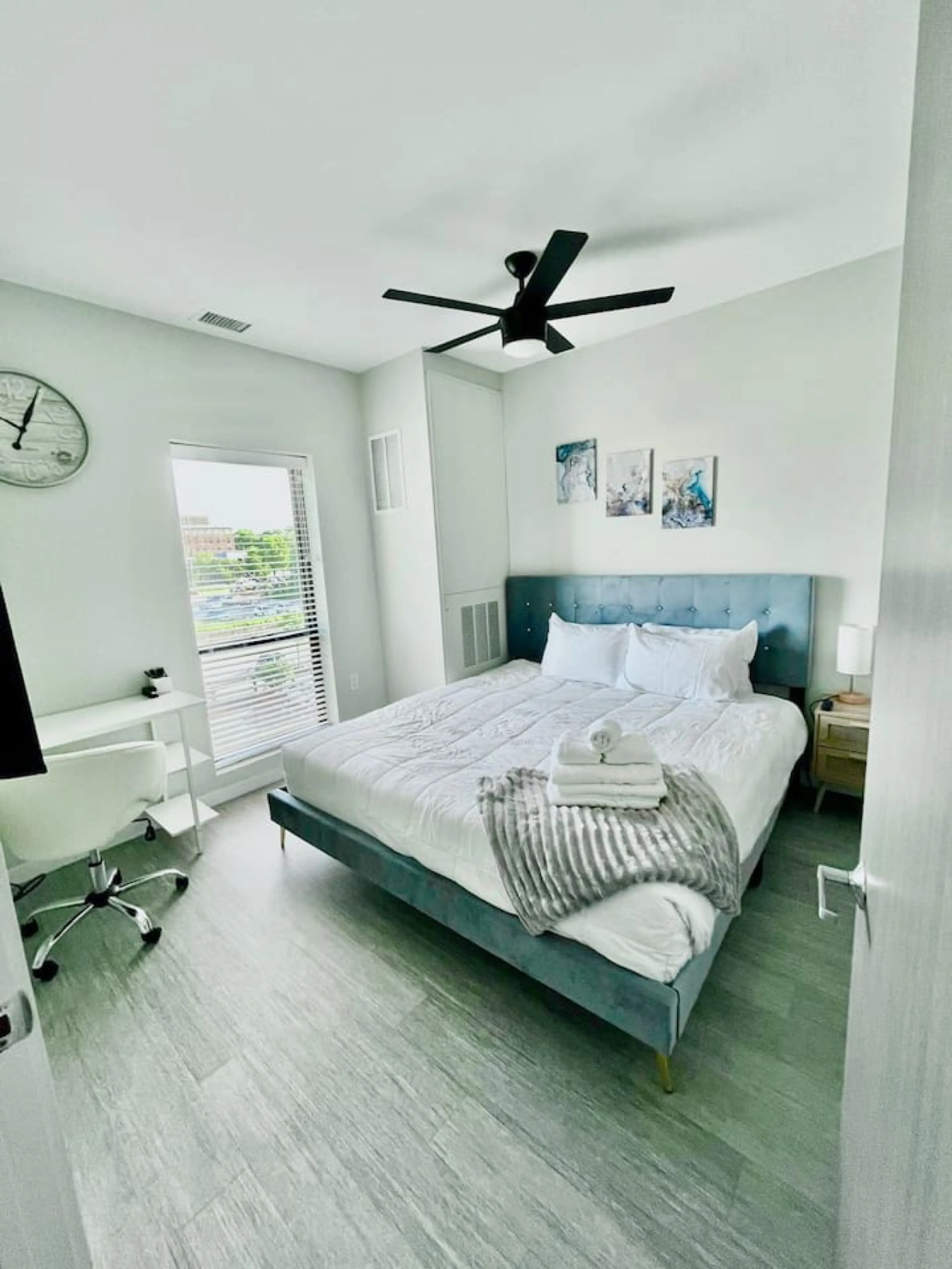 Welcome to Skyline Solace – a serene, sky-hued escape nestled above the city. Styled with calming tones of sky blue and crisp white, this bright and airy space is designed to bring a sense of peace and lightness to your stay. Whether you're sipping coffee by the window or unwinding after a day of ex...