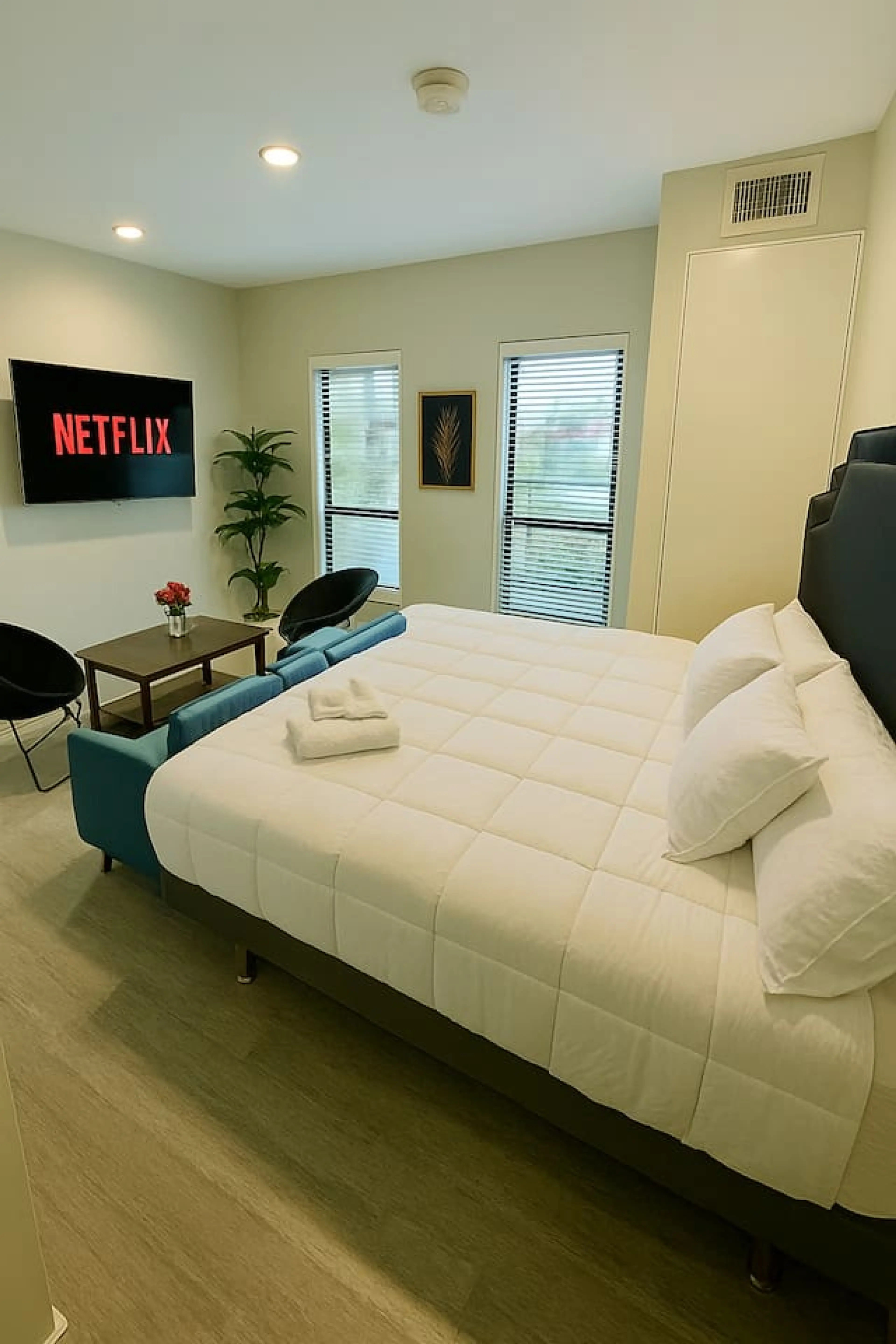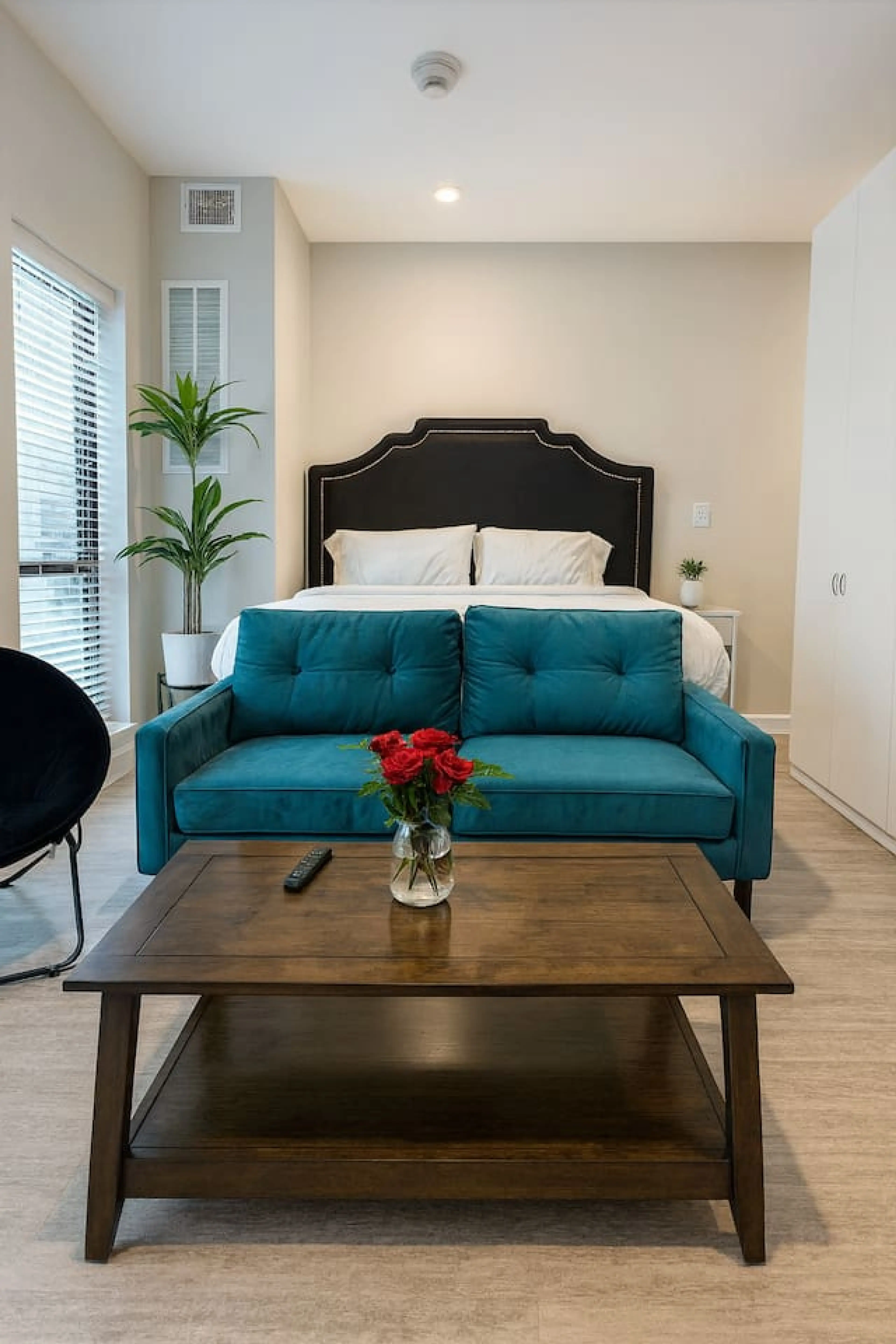 Enjoy a stylish experience at this centrally-located place. Featuring a sophisticated blend of green, brown, black, and white tones, this studio provides a perfect balance of modern comfort and natural charm. Situated in the heart of Des Moines’ East Village, it’s ideal for business travelers, getaw...