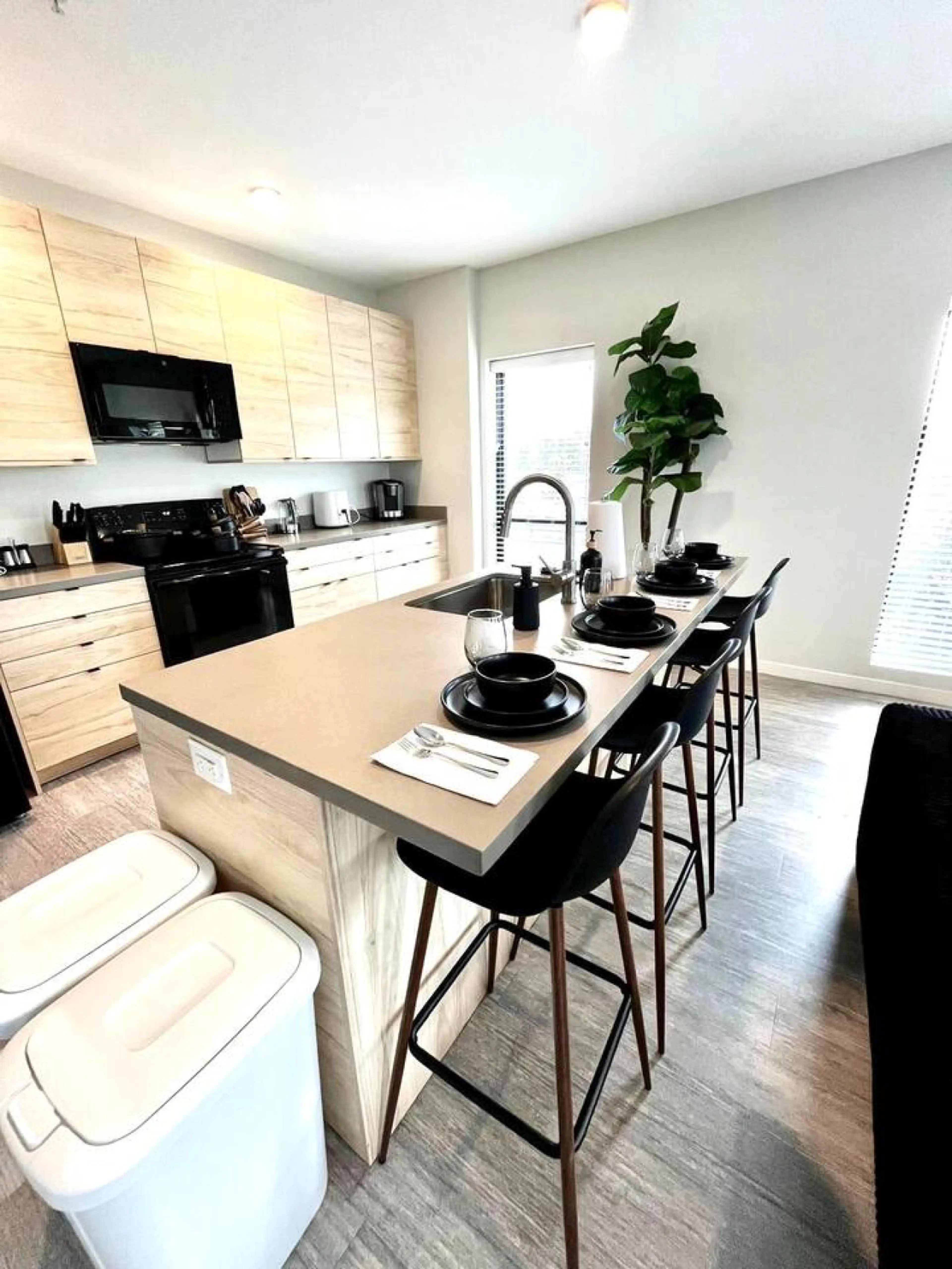 Experience modern comfort in this family-friendly 2-bedroom retreat in downtown Des Moines! Enjoy access to a gym, rooftop lounge, fireplace, and theater room, plus fast WiFi for work or streaming. Just steps from top restaurants, shops, and attractions, this stylish neutral-toned stay offers the pe...